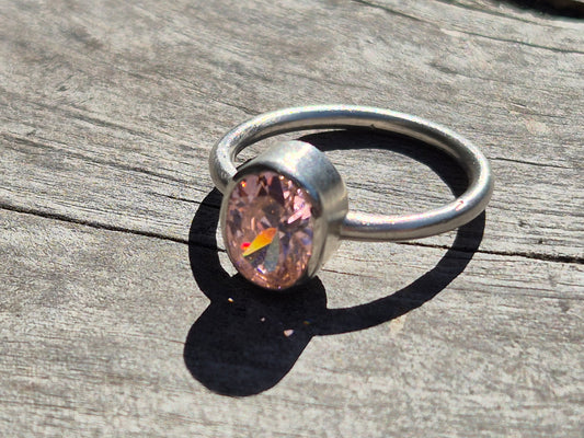 Slim Sterling Silver and Pink Cubic Zirconia Ring
