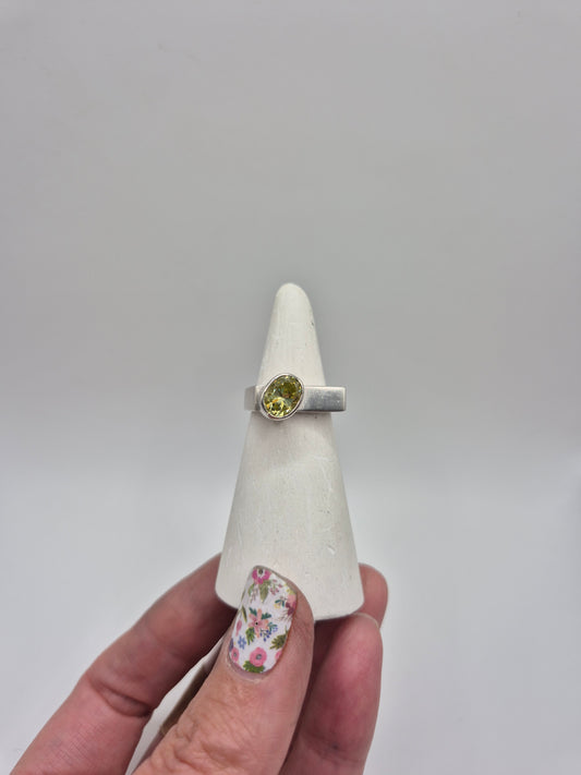 Sterling Silver and Acid Green Cubic Zirconia Ring