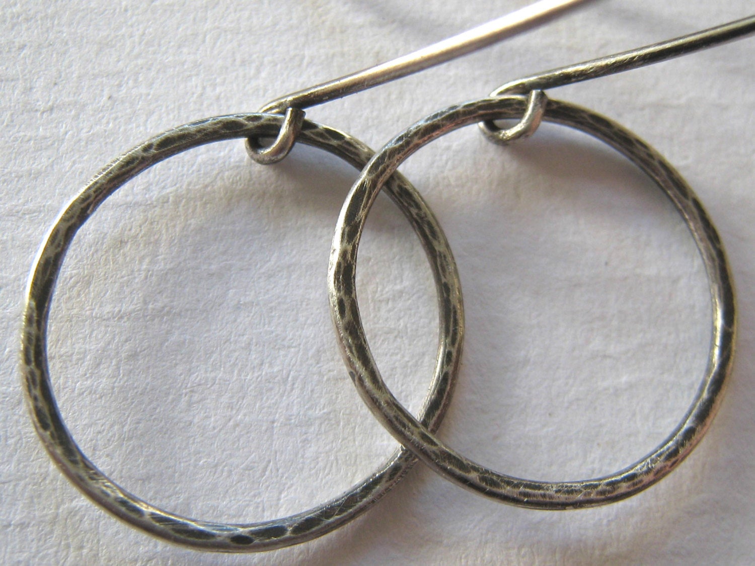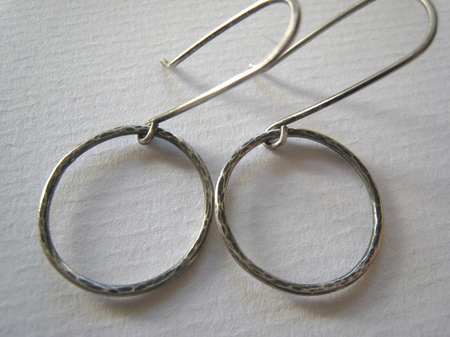 The earrings have been made using sterling silver wire and have been hand shaped and soldered. Then they have been oxidised to age and enhance the design. Please note that oxidising isn't completely permanent and will wear over time to a patina unique to you.