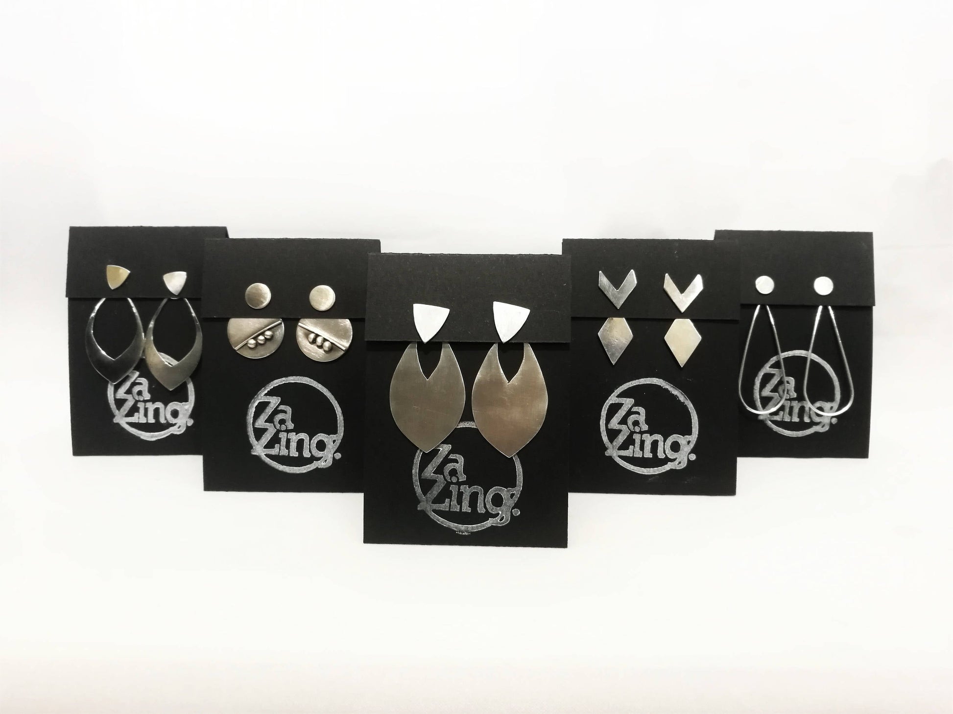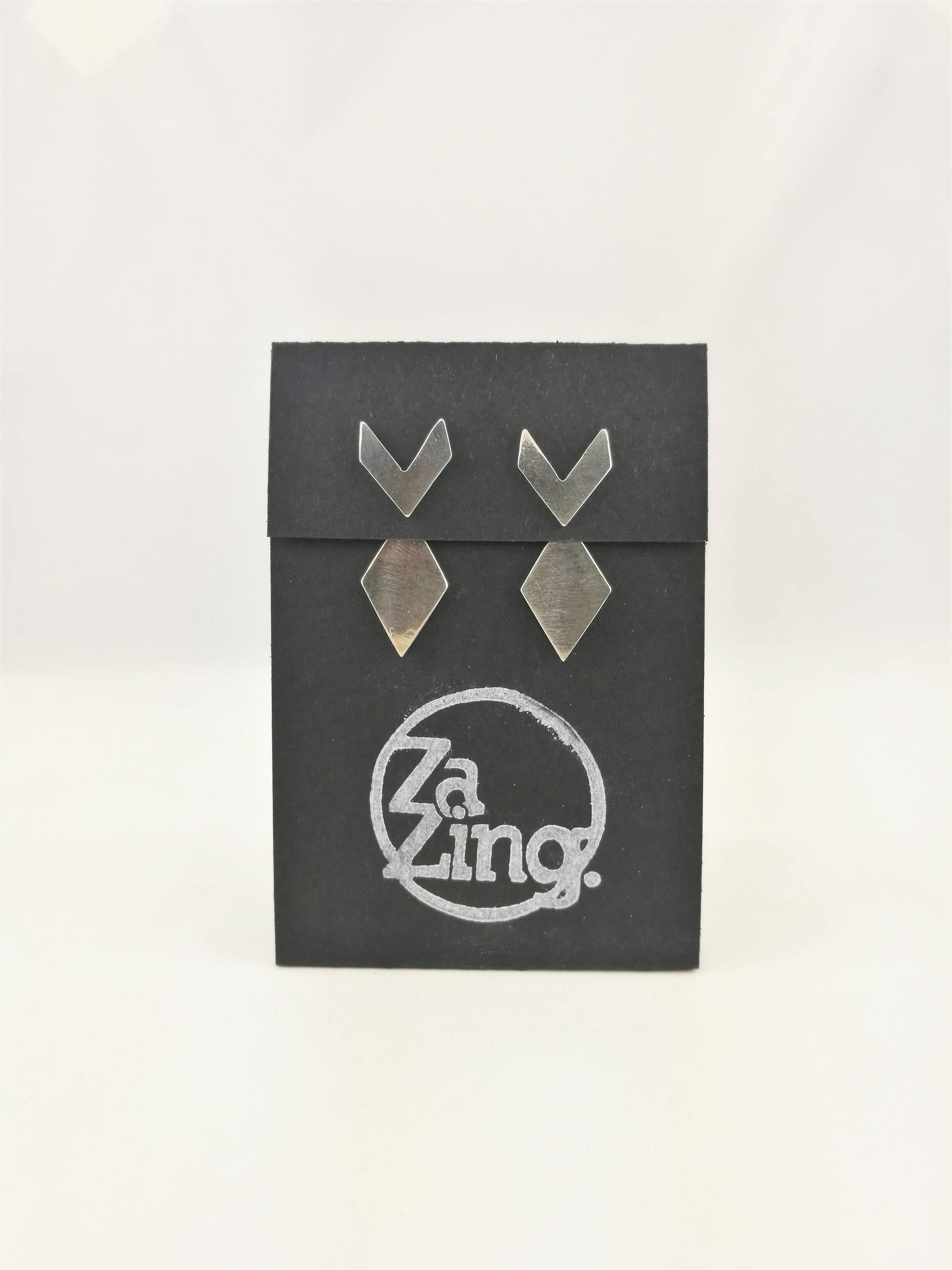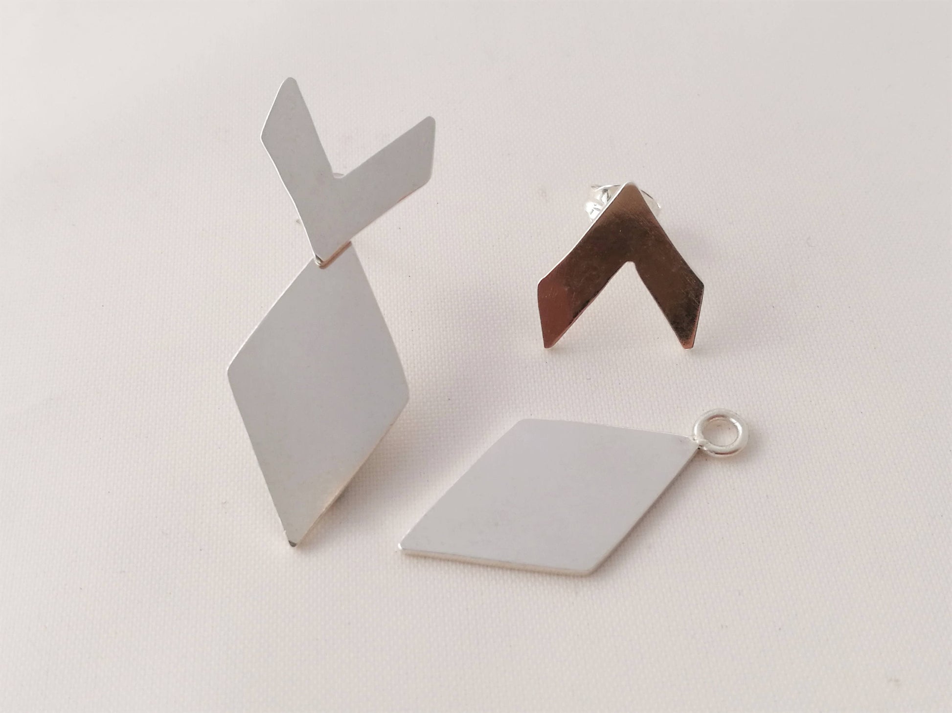 These chevron and diamond shaped ear jackets can be worn 3 ways. You can choose to wear the studs on their own or hang the diamond in front or behind your ear lobe. The earrings are lightweight and comfortable to wear.