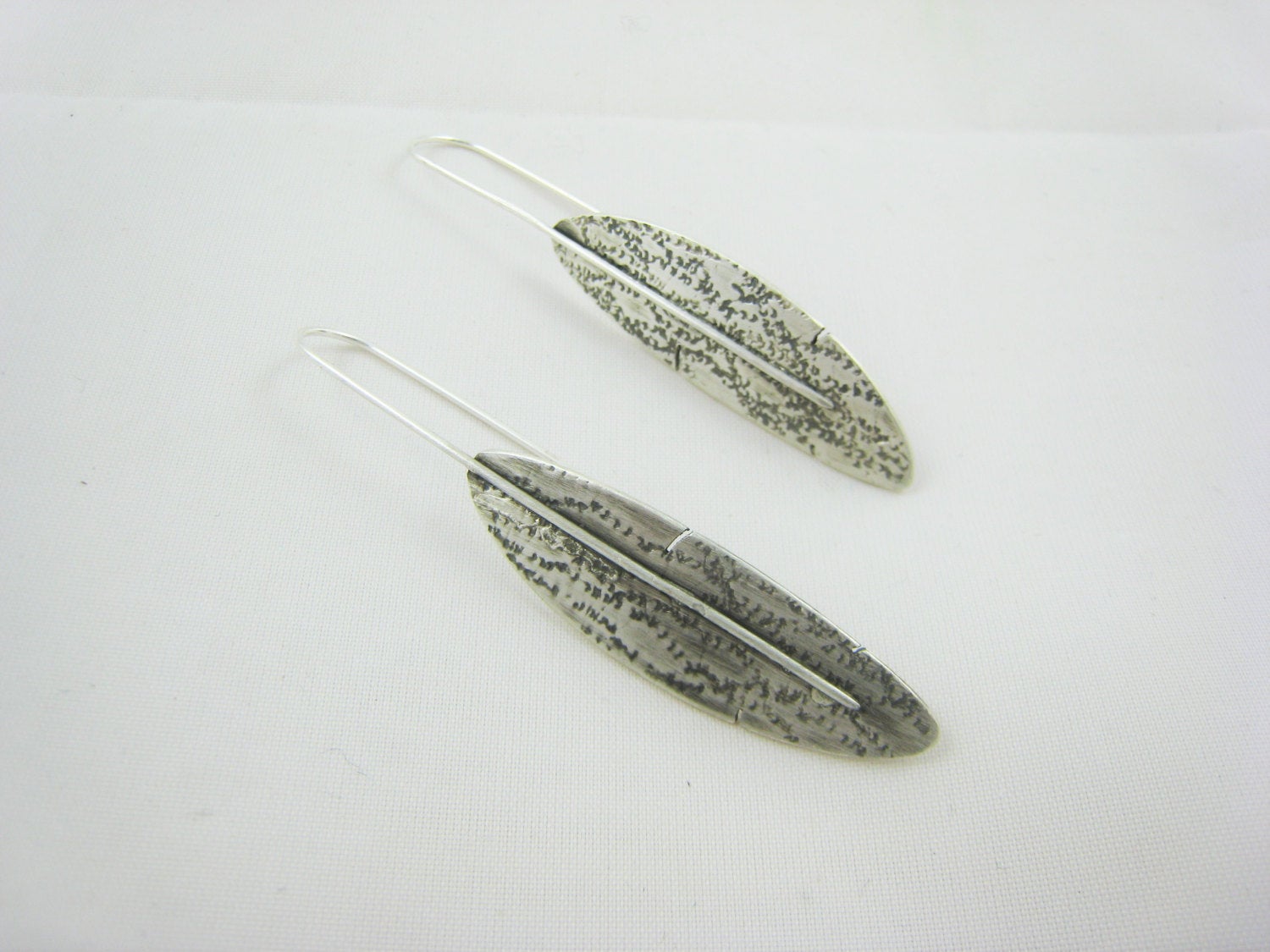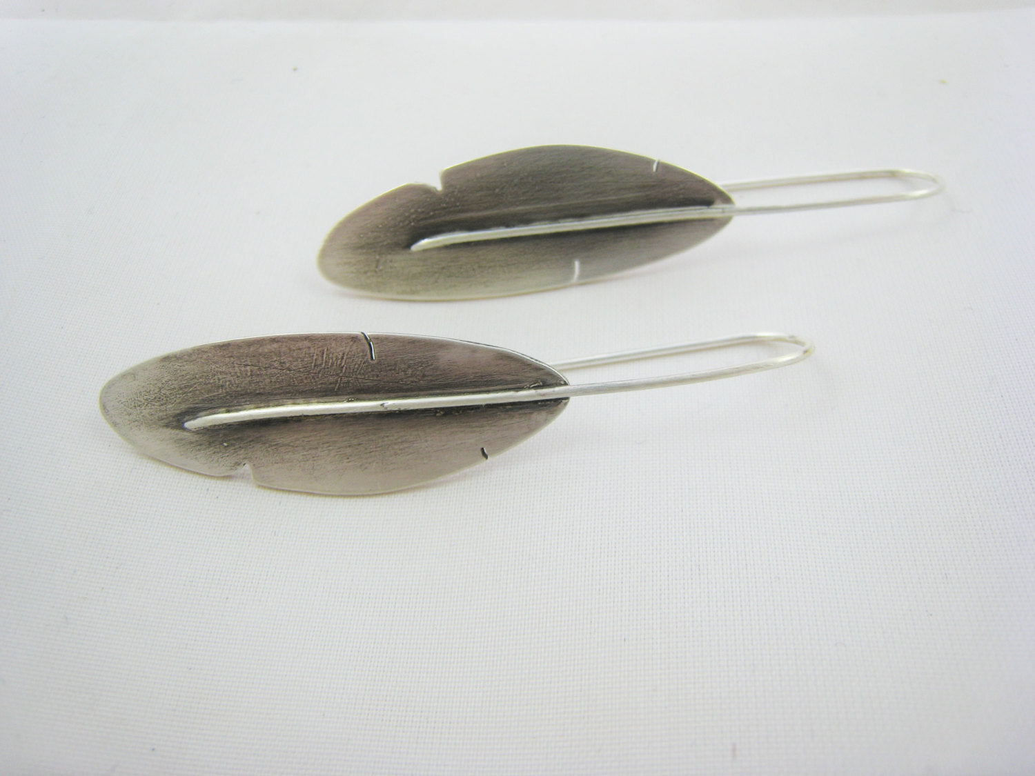 These simple sterling silver feather earrings are modern and contemporary. The silver feathers have been handcut, soldered, oxidised and polished for a very simple look.