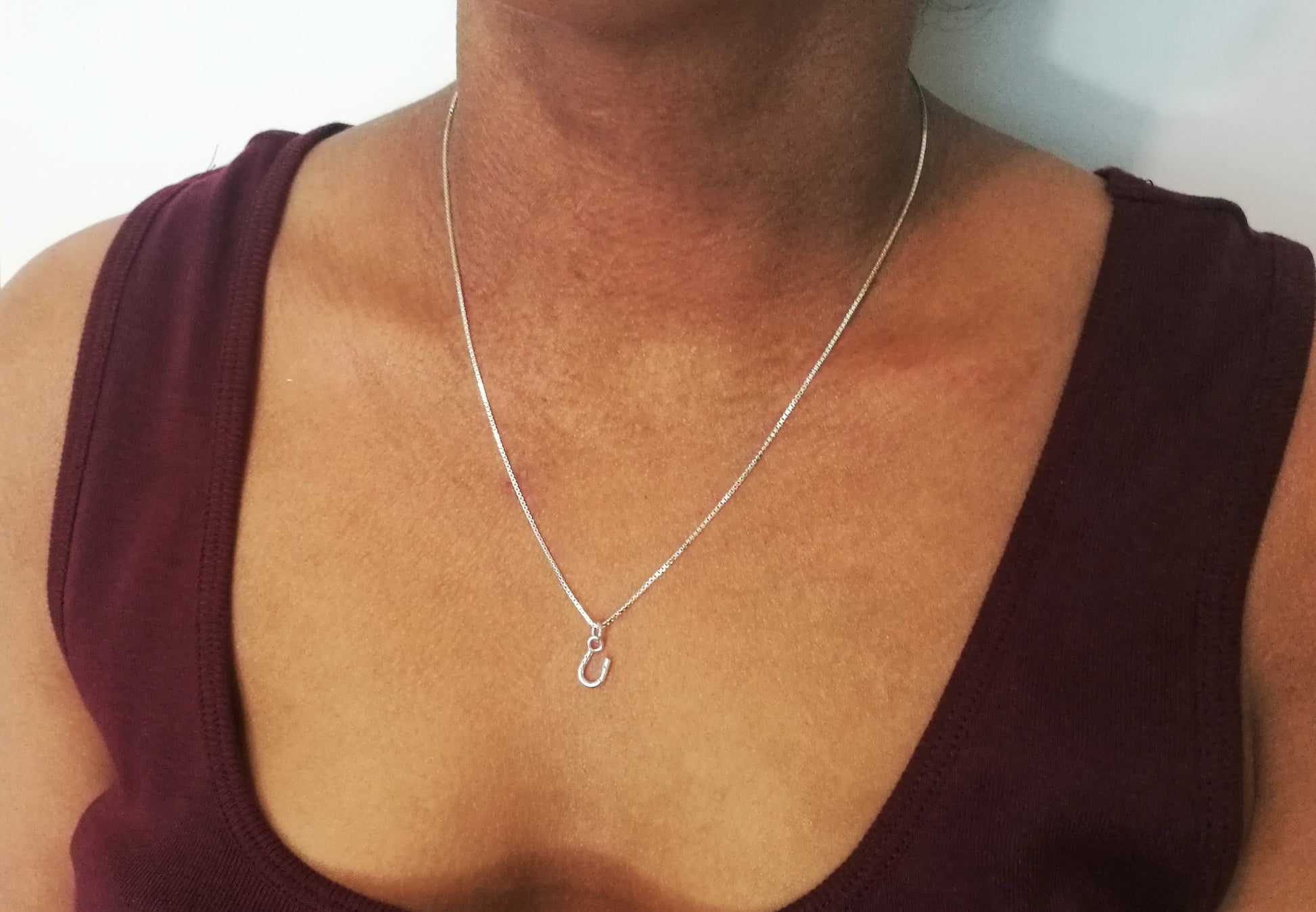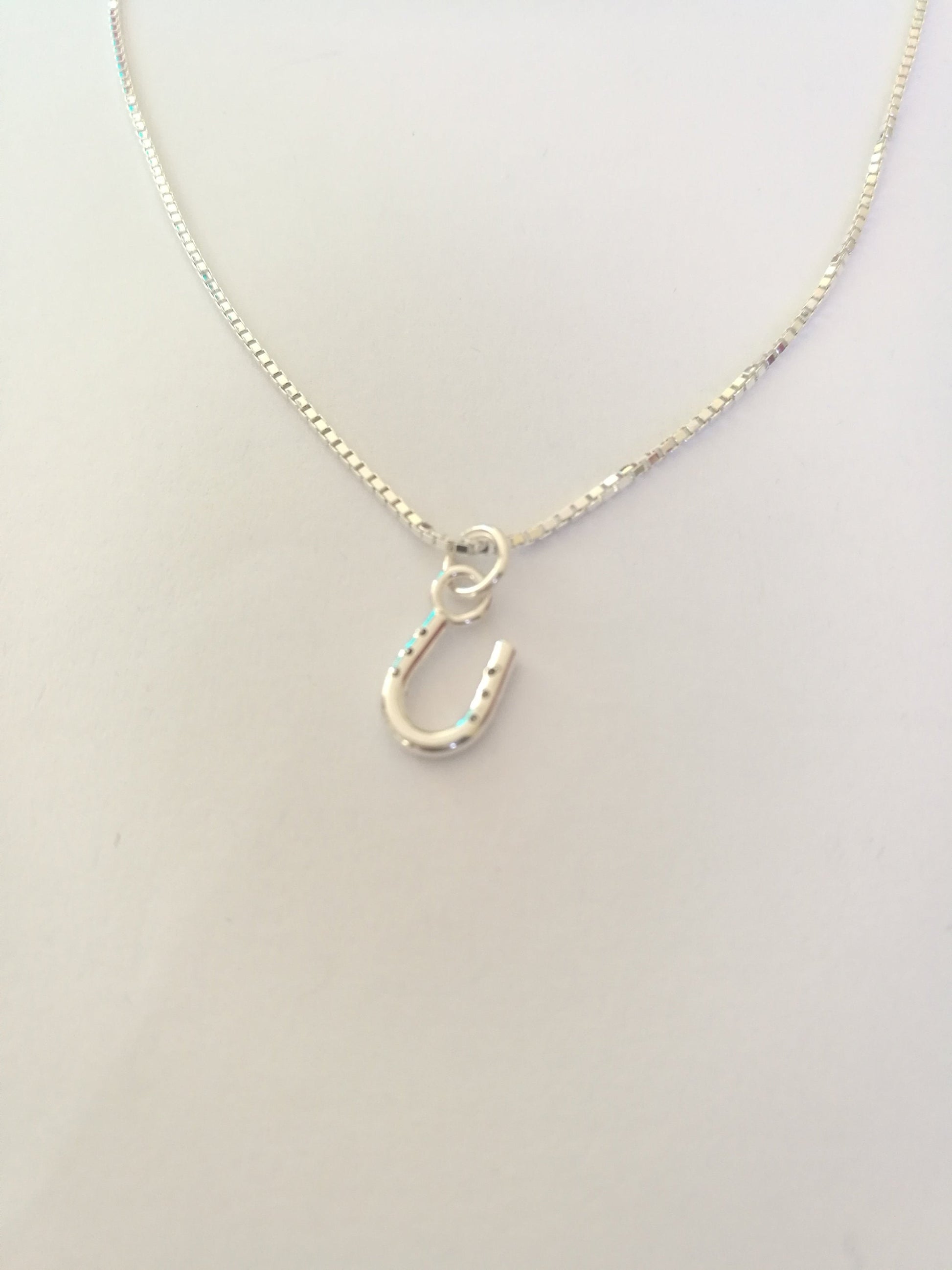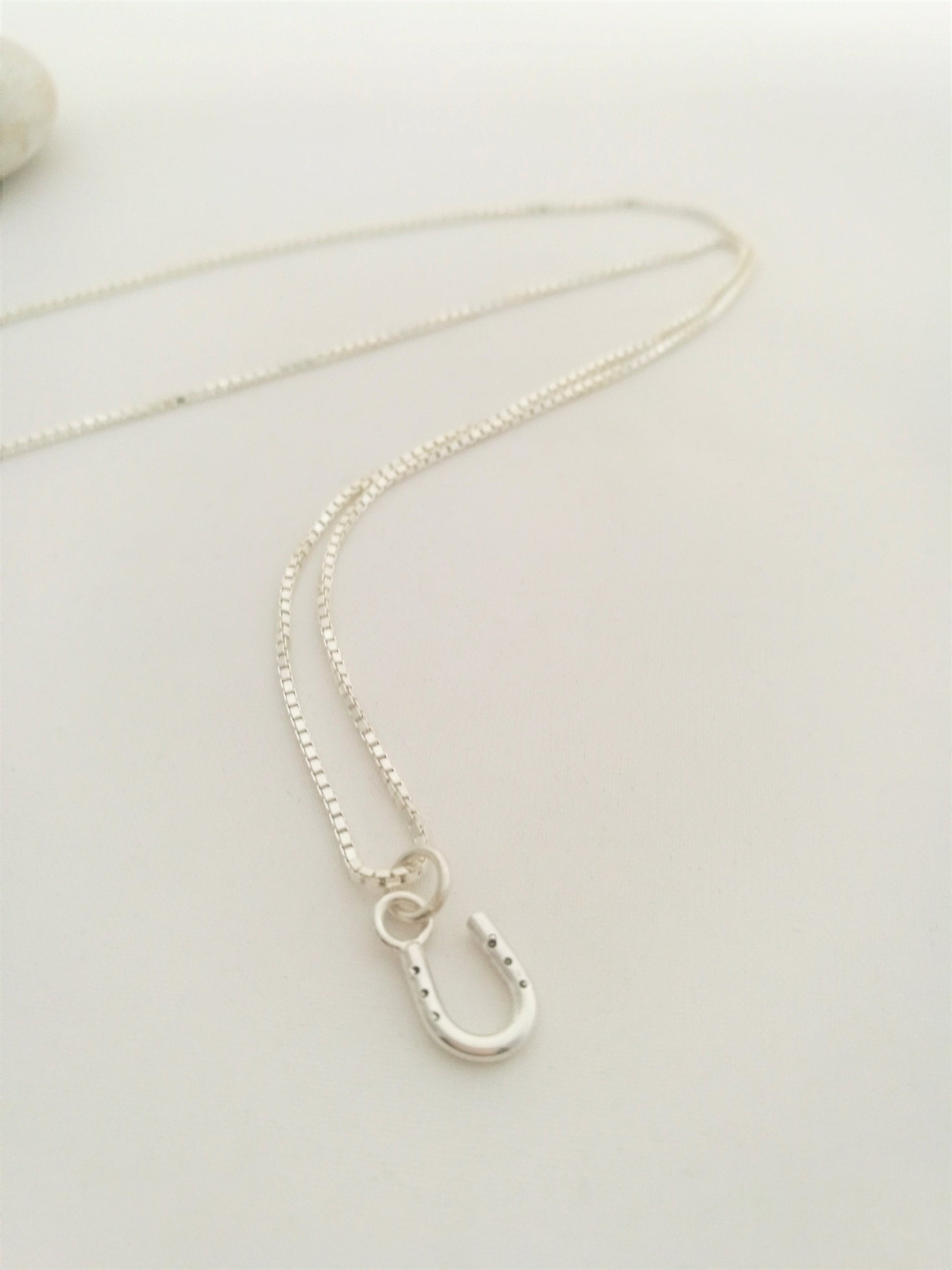 This minimal sterling silver necklace is perfect for layering. This tiny horseshoe pendant has been hung on a sterling silver box chain.