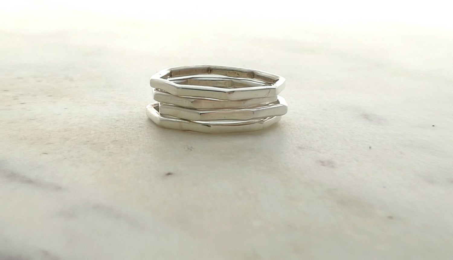 This silver stacking ring has been forged into shape using sterling silver wire. The ring can also be worn as part of a stack, on it's own or as a midi ring.
