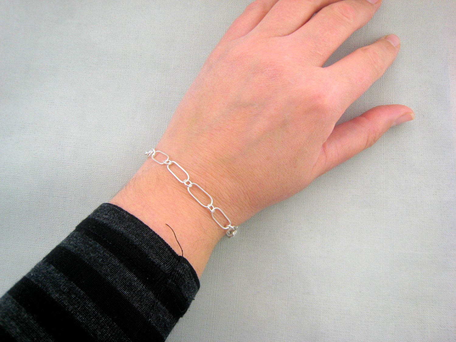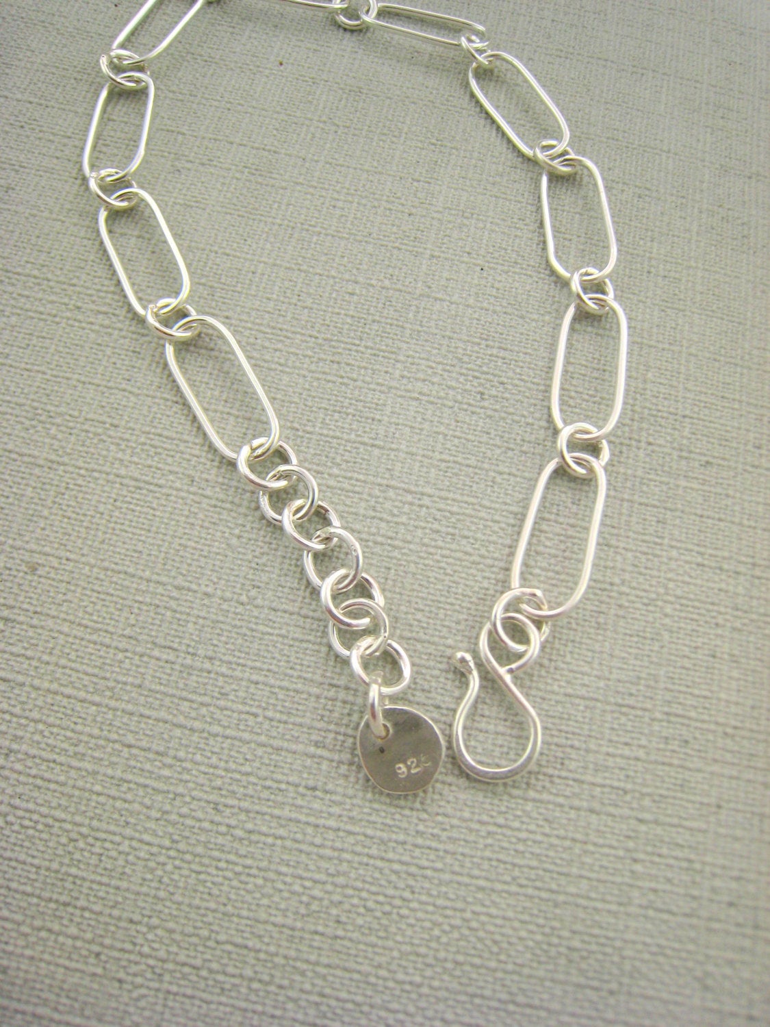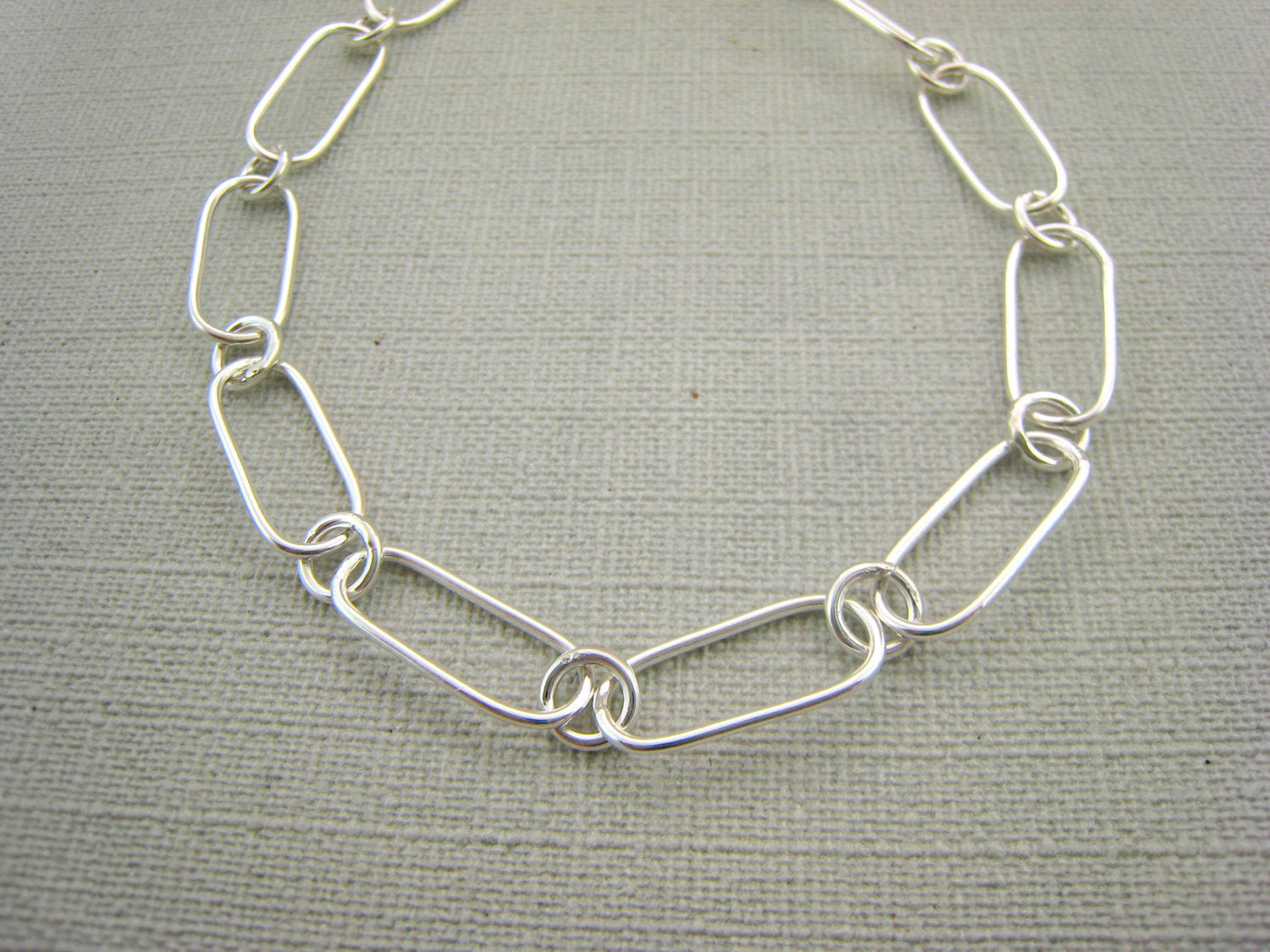 This oval link bracelet is lightweight and comfortable enough for everyday wear. I have made each link on this bracelet by hand from sterling silver wire, each link has been soldered closed so the bracelet is sturdy. The oval links have been elongated to create a slim link. The catch and extension chain is also handmade. The bracelet is finished with a high shine polish.