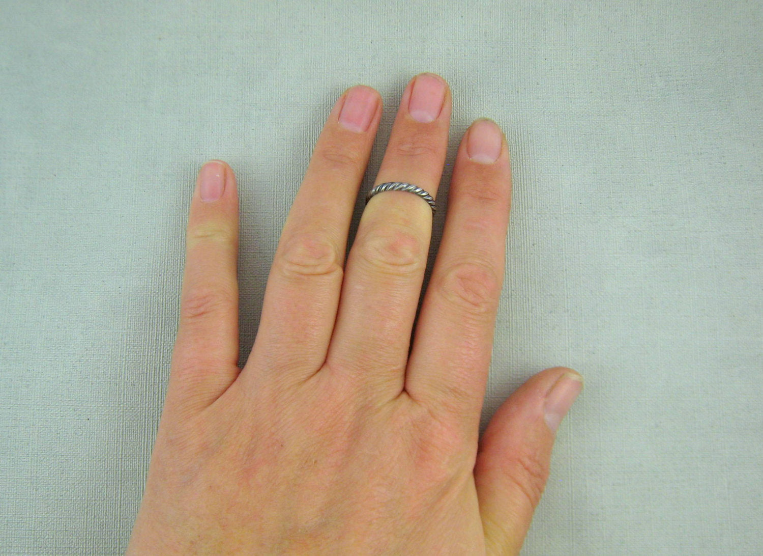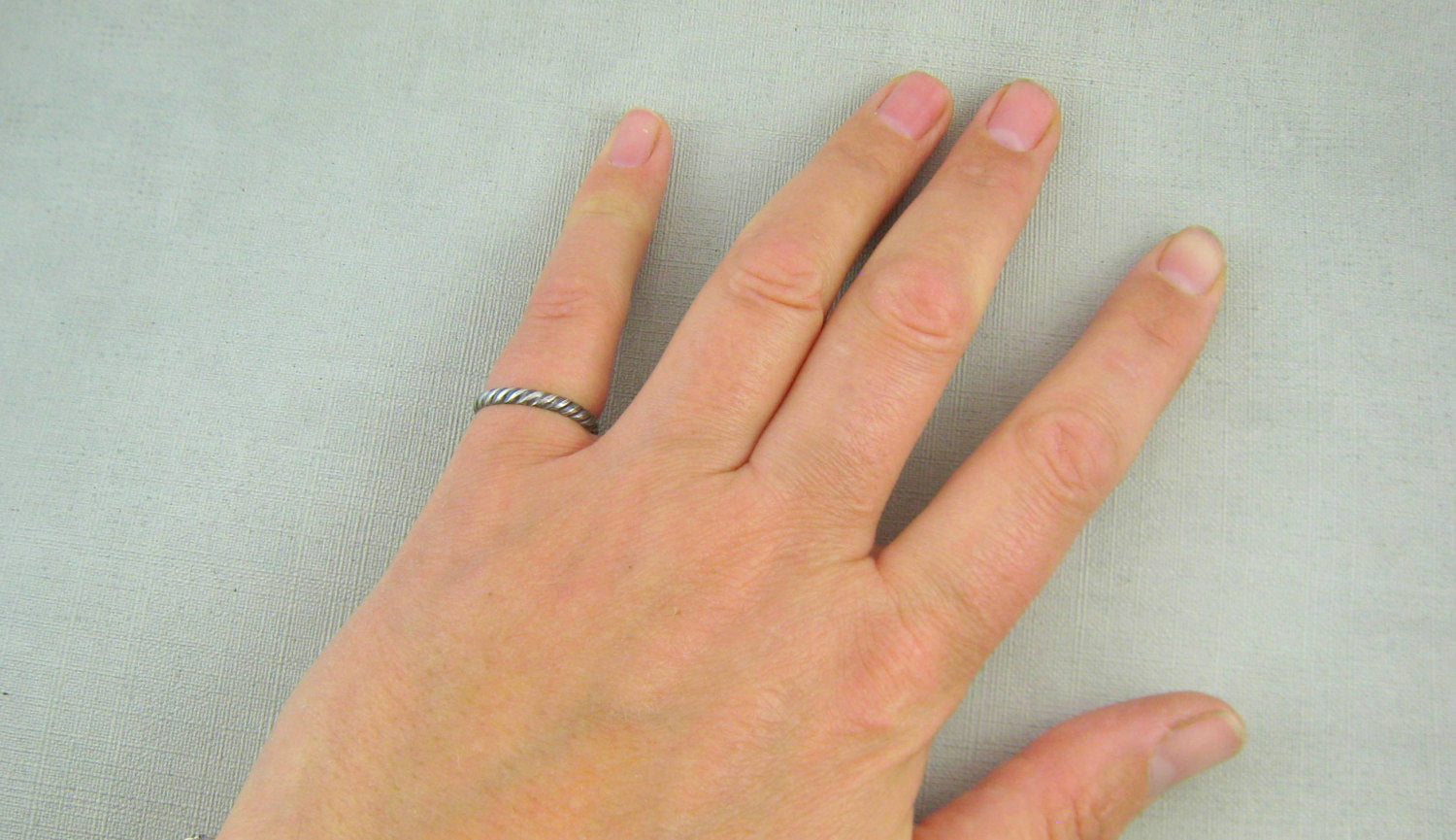This ring has been hand-formed, fabricated and oxidised for a blackened finish. Please note that oxidising isn't completely permanent and will wear over time to a patina unique to you.