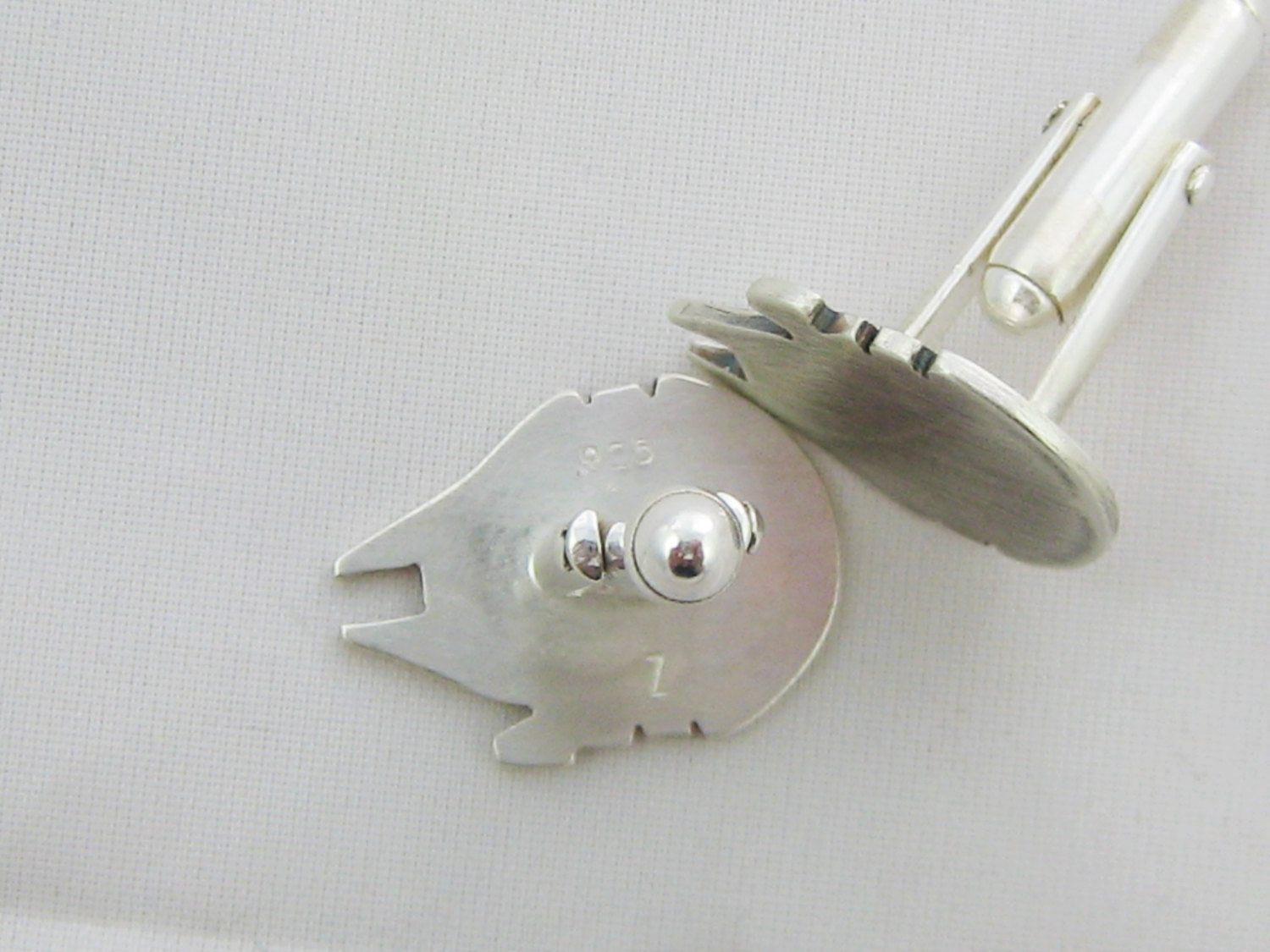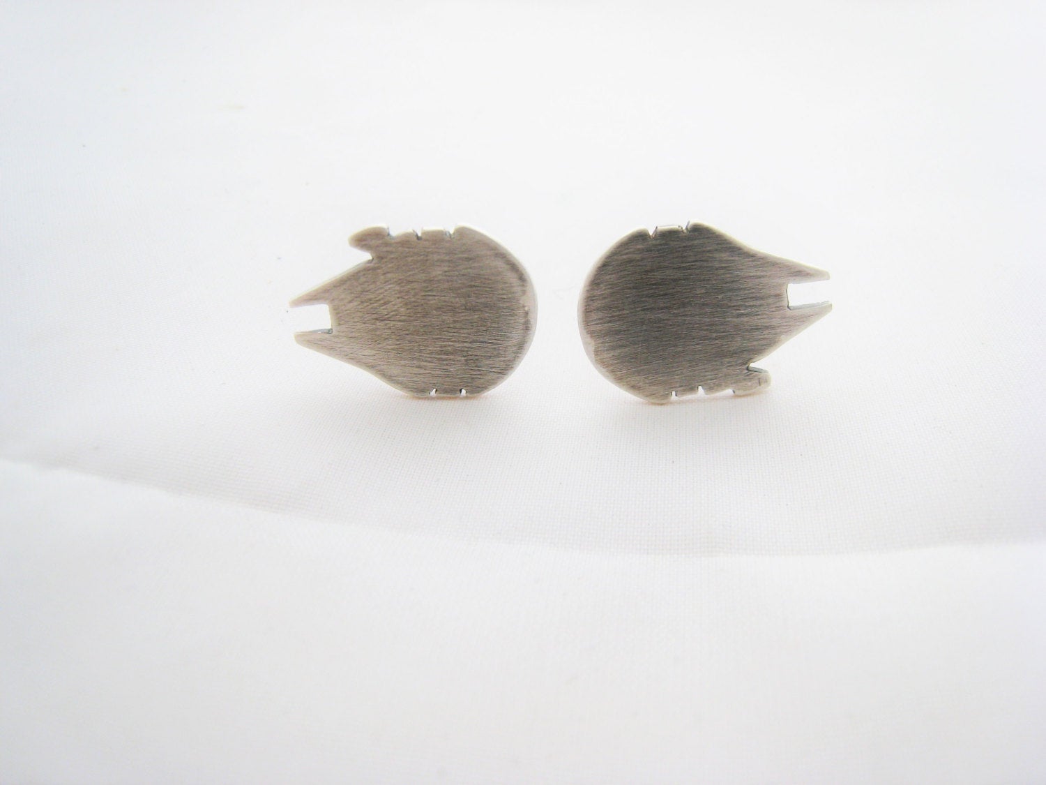 These simple sterling silver cufflinks are a stylish addition to any Star Wars fan's collection. The Millennium Falcon has been hand-cut from sterling silver sheet and given a matte finish. I have also oxidised the cufflinks, however, if you would prefer a non-oxidsed matte finish or a high polished finish please let me know.